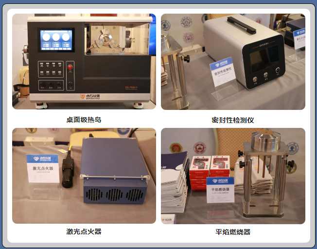 桌面級熱島是專用于燃燒熱解反應的實驗設備,可構建復合型實驗環(huán)境,能夠模擬北方冬季的低溫環(huán)境、南方夏季的高溫環(huán)境,以及高海拔低壓缺氧環(huán)境,在行業(yè)內處于領先水平。激光點火器屬于非接觸式點火,點火能量高達100W,能夠迅速點燃鋰電池、煤粉顆粒、鋁鎂合金等實驗樣品,性能優(yōu)于電極和電阻絲等傳統(tǒng)電點火方式。平焰燃燒器能夠生成溫度均勻且穩(wěn)定持續(xù)的火焰,支持燃料混合物燃燒,適用于質量燃燒分析。高精度無損密封性檢測儀采用差壓式檢測法,測量精度高,分辨率達到了0.1Pa,適用于檢測實驗室設備的密封性?!秉c石儀器工作人員向現(xiàn)場咨詢的專家學者介紹道。