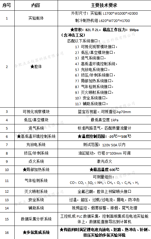 基于現行的主要國家標準和國際標準,并考慮多種外部條件綜合疊加的可行性,點石儀器推出的這款82L電池綜合實驗艙主要設計參數如下所示:
