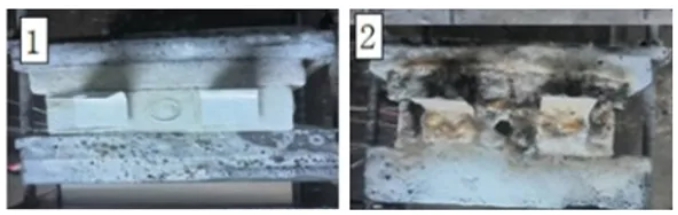 通過滿荷電狀態下的100 Ah磷酸鐵鋰儲能電池熱失控演變過程特征參數劃分鋰離子電池熱失控階段,識別出三個災害演變特征拐點作為滅火劑施加的指導節點。在相同節點分別施加滅火參數一致的氣凝膠泡沫滅火劑與細水霧,開展滅火對比測試。通過比較細水霧和氣凝膠泡沫滅火劑在指導節點噴灑后鋰離子電池外殼與電池火焰溫度曲線,分析在不同熱失控階段內氣凝膠泡沫滅火劑相較細水霧滅火抑制效果的優勢及原理。研究結果表明,觸發明火前施加滅火劑均可有效阻斷電池內部放熱副反應,兩者表現出相似的冷卻效能;電池起火后,氣凝膠泡沫滅火劑展現出更為出色的明火抑制效果,其接觸電池表面形成的致密泡沫可有效阻隔氧氣,實現快速滅火,如圖2所示。