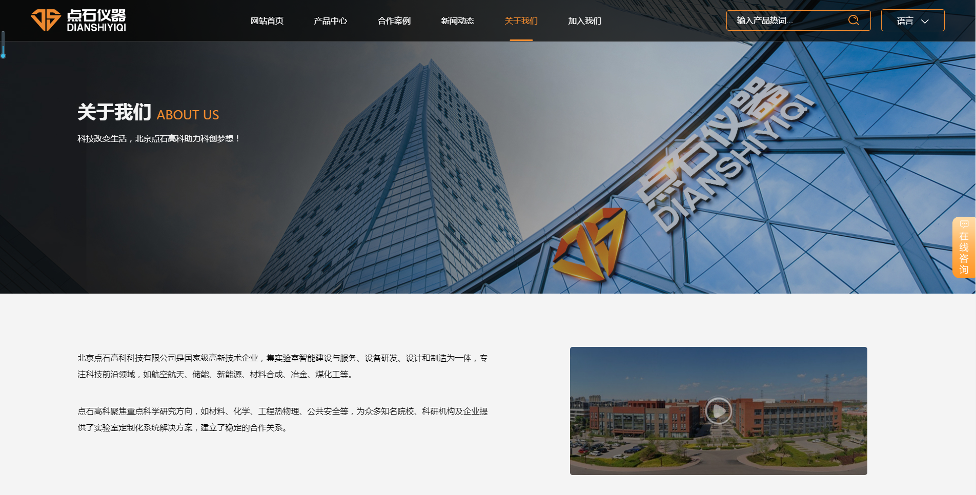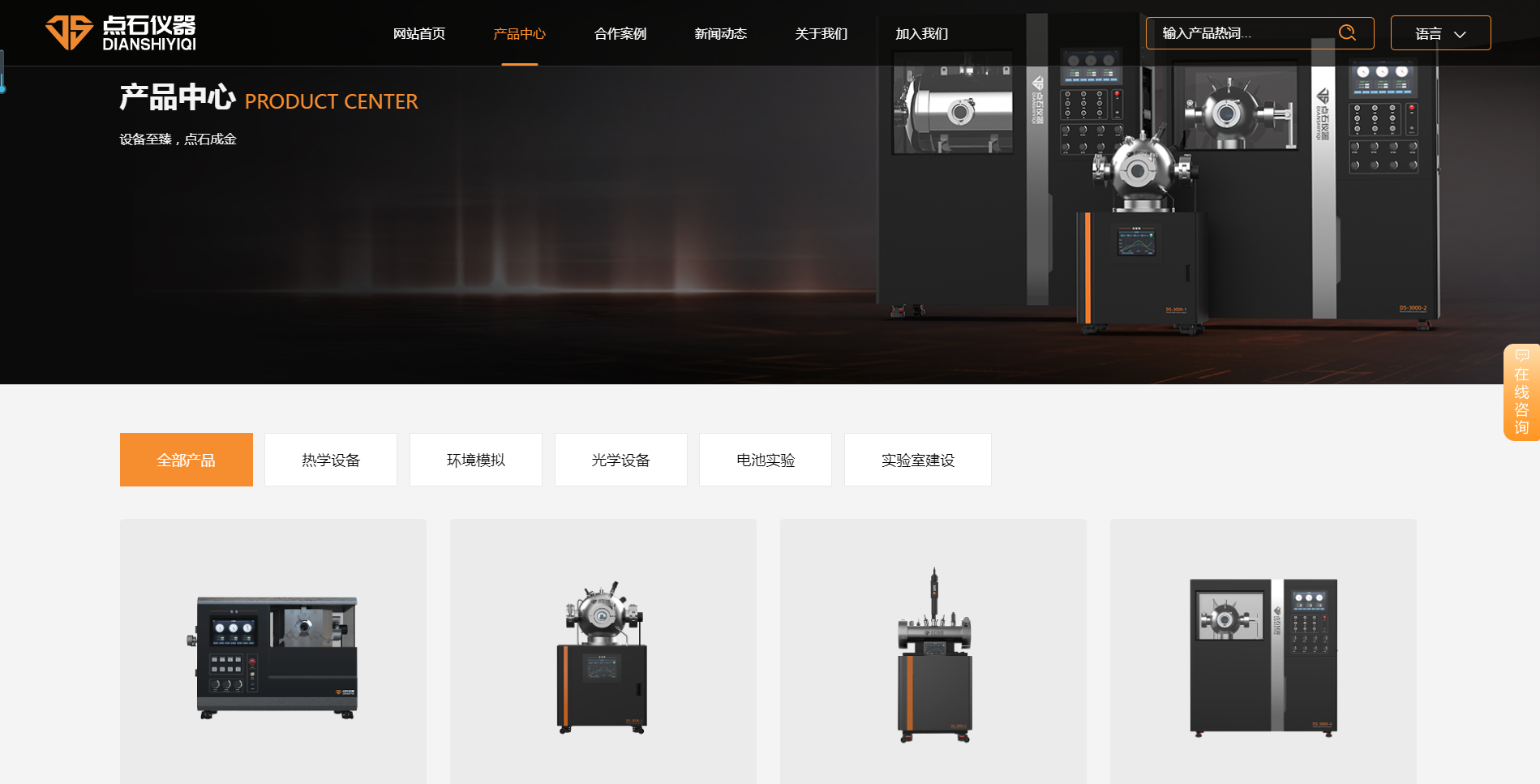 依據公司產品特性新官網產品劃分為5類,熱學/環境模擬/光學/電池實驗/實驗室建設配有產品視頻,提供詳實的產品介紹涵蓋典型應用、功能特點、及技術參數便于用戶深入了解產品信息。
