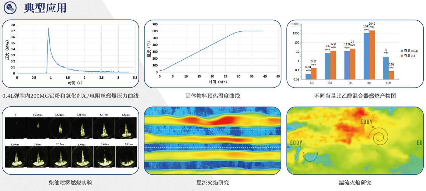 定容彈可測試復合環(huán)境下材料的燃爆特性,對實驗過程進行實時監(jiān)測與觀察,支持數(shù)據(jù)采集與產(chǎn)物分析,用于層流燃燒、湍流燃燒、一次性燃燒、連續(xù)燃燒的研究。
