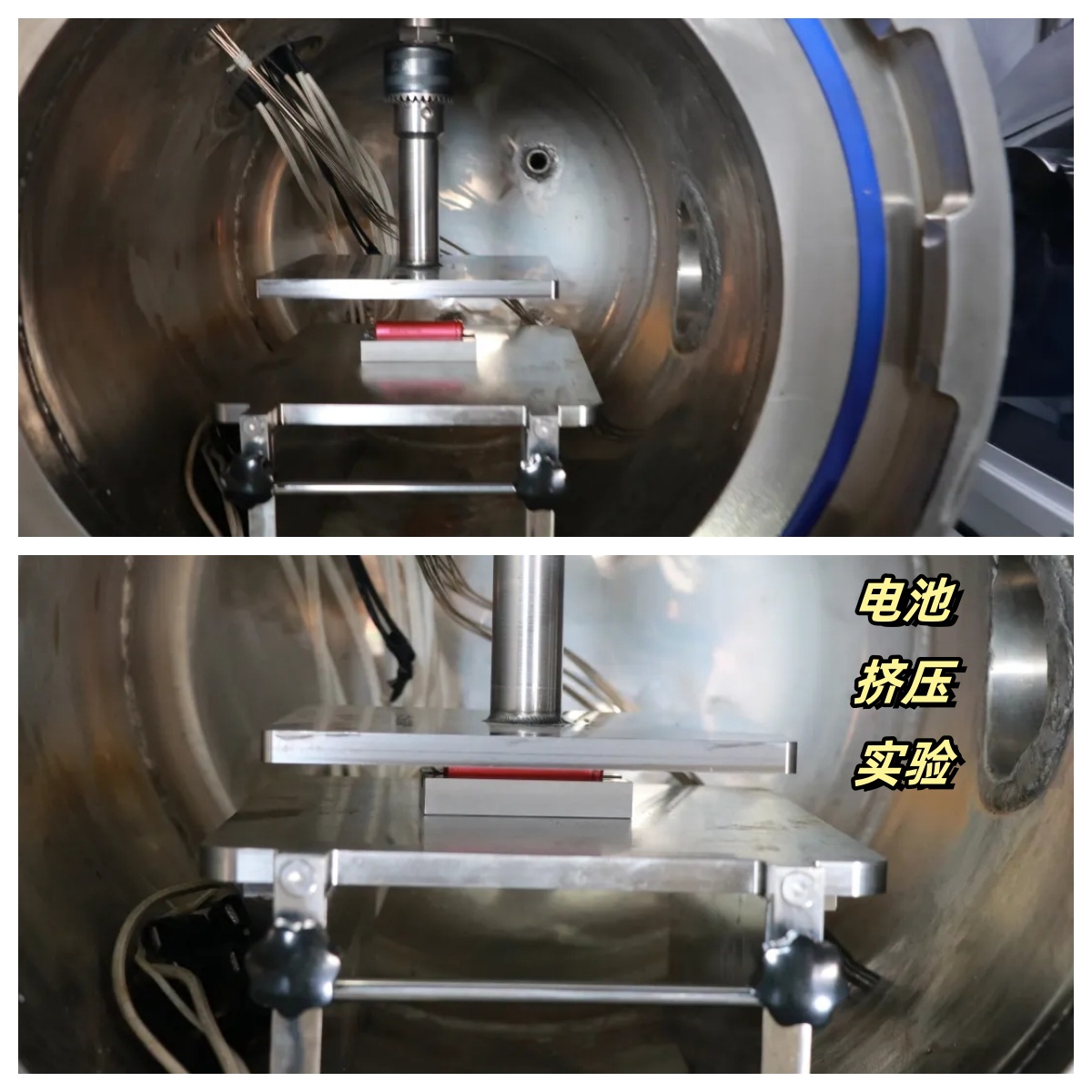 2、電池擠壓實驗:不同環境條件下(高氣壓/低氣壓、環境高溫/環境低溫/局部高溫、富氧/貧氧/保護氣體)的電池擠壓實驗。