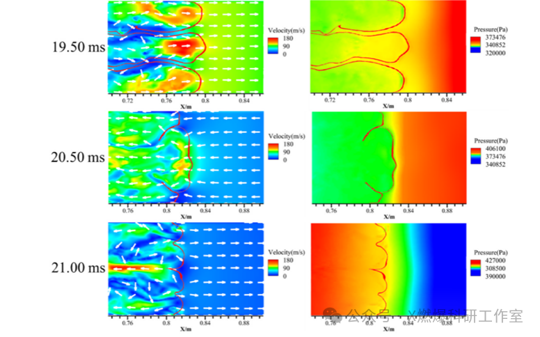 3.2火焰動力學及壓力場、速度場和流場對火焰前鋒的耦合作用