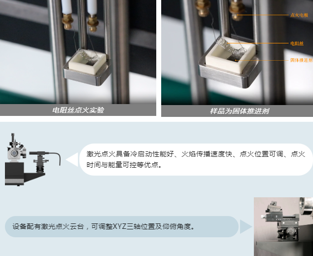 多種點火方式靈活可選:電阻絲點火、激光點火等。